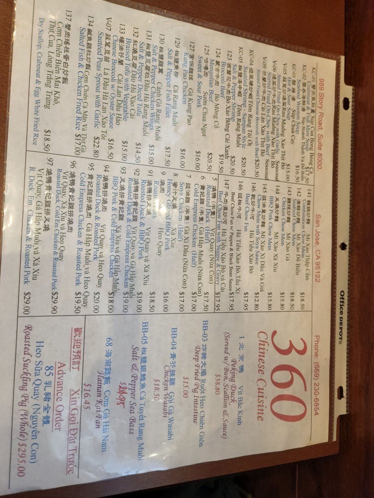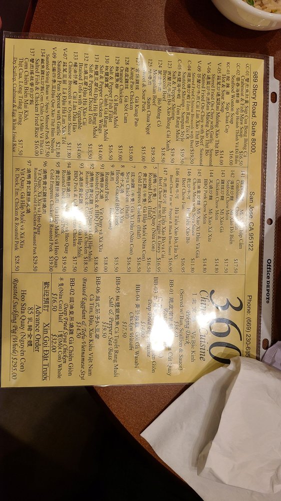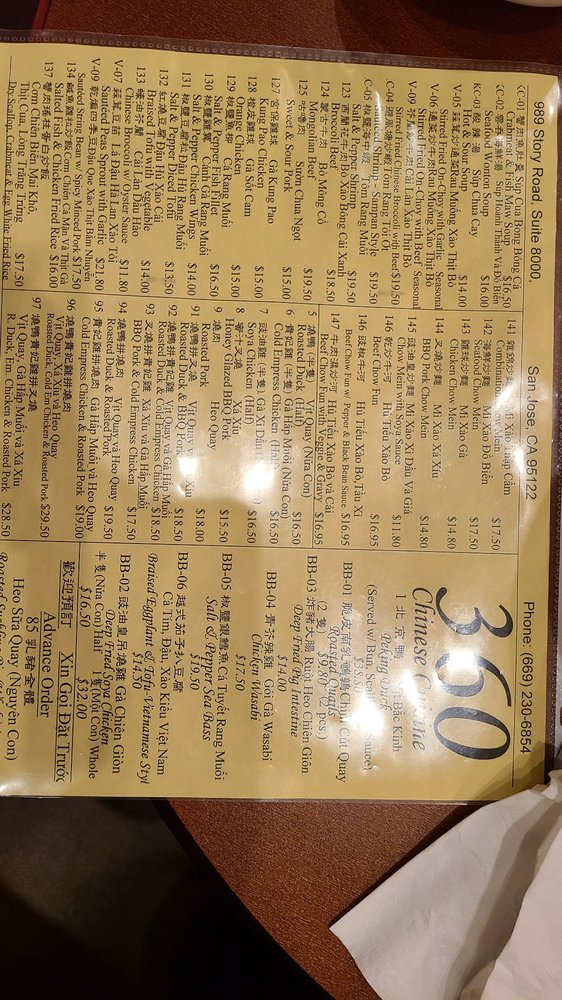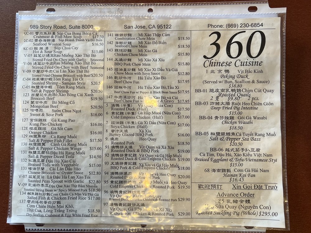 Welcome to 360 Chinese Cuisine, a staple in San Jose for seafood lovers looking to indulge in authentic Chinese flavors. Located at 989 Story Rd Unit 8000, this restaurant is not just a dining spot but a culinary destination that embraces the richness of Chinese gastronomy.