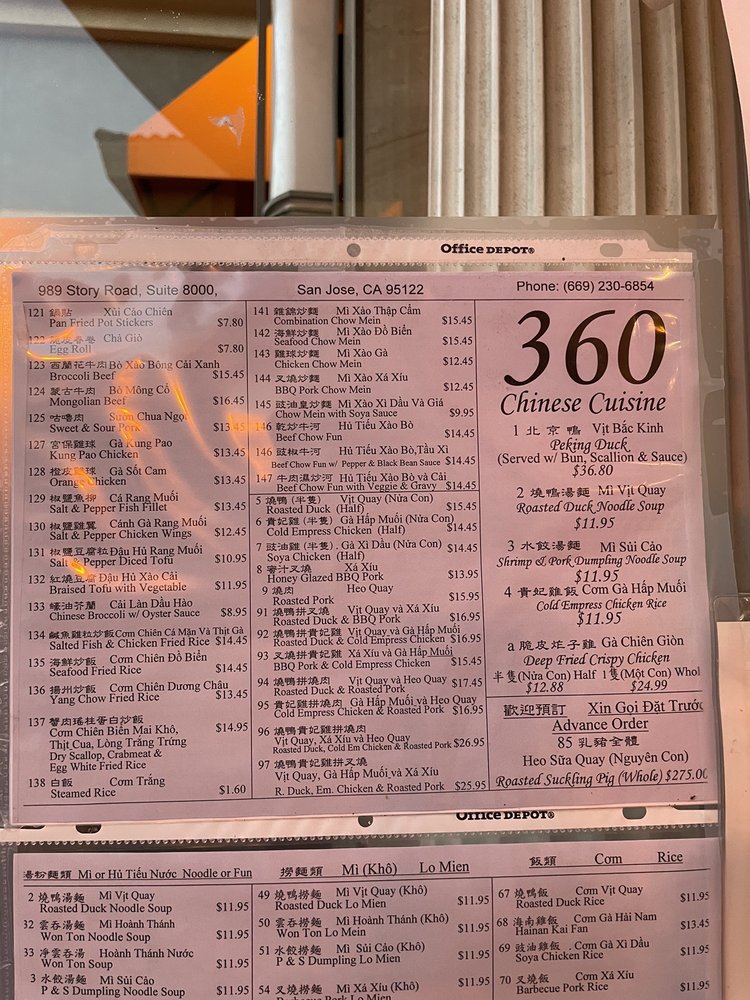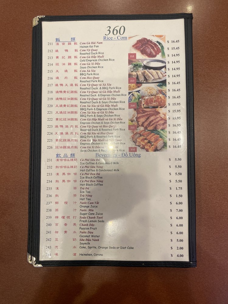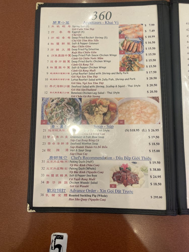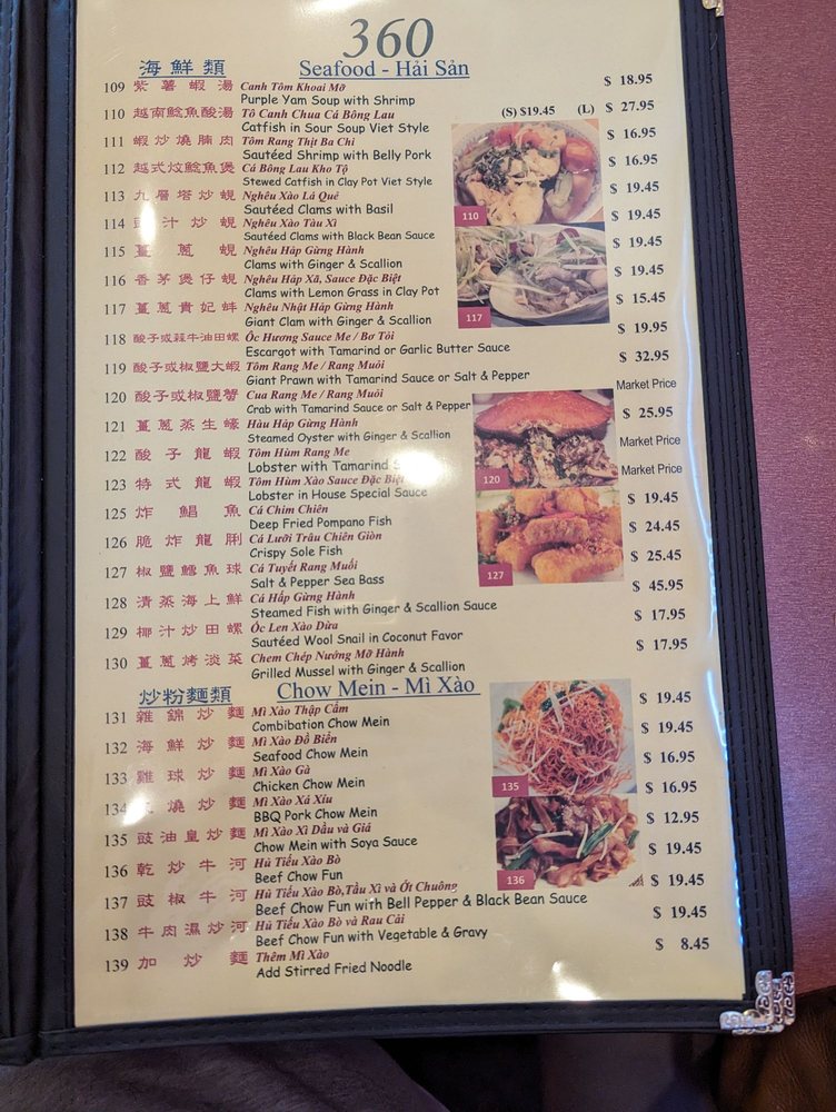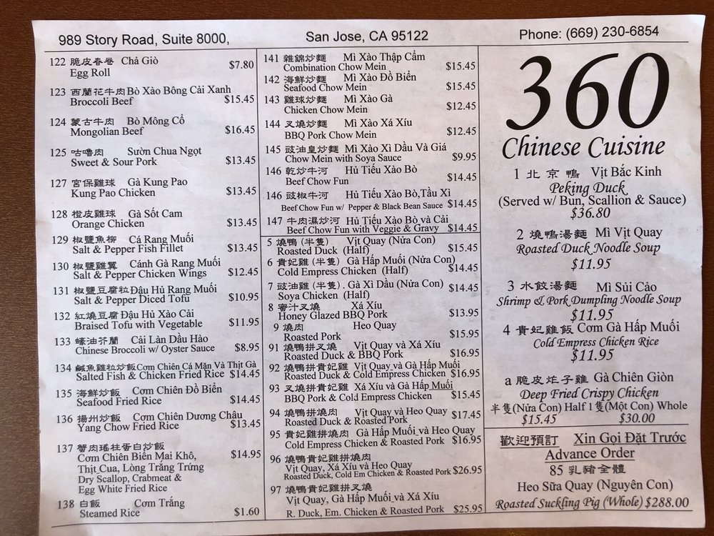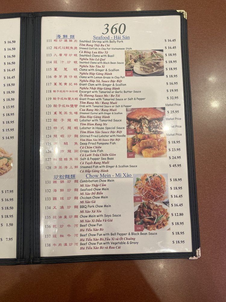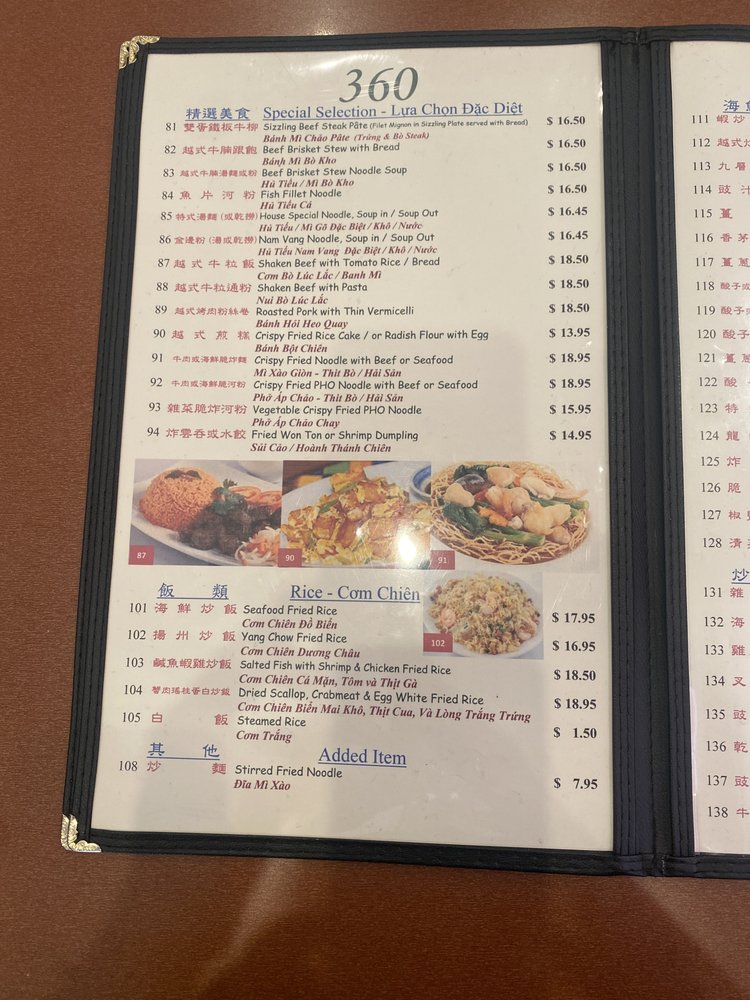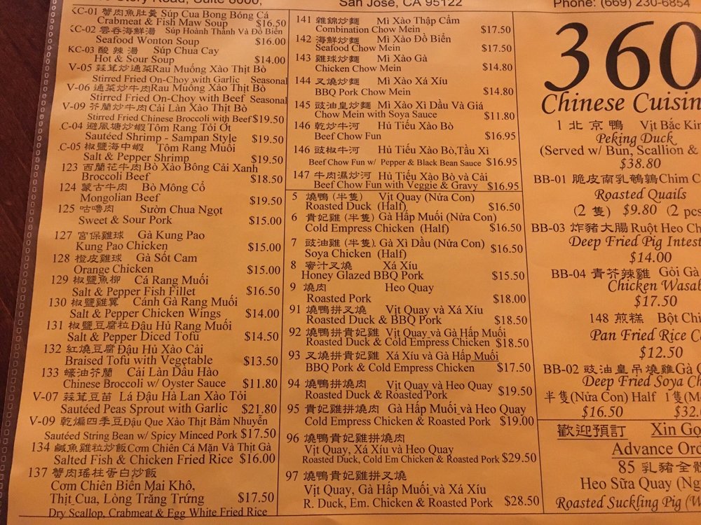 360 Chinese Cuisine Menu